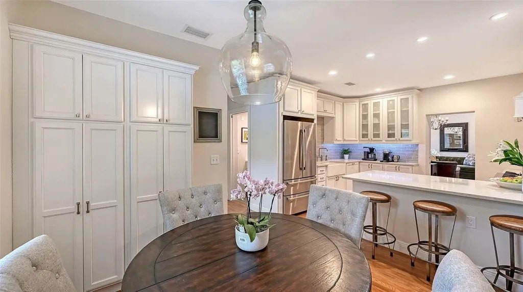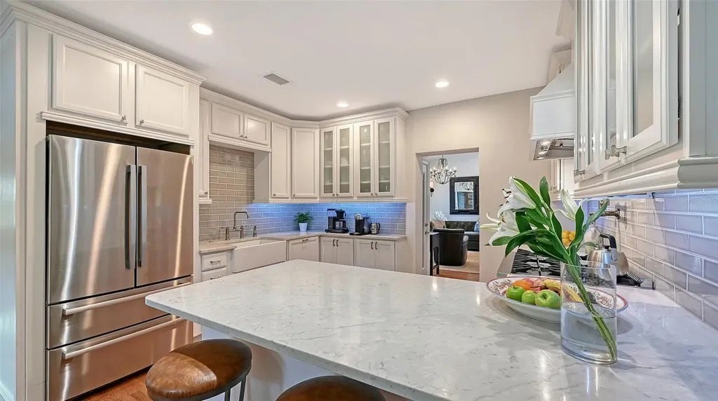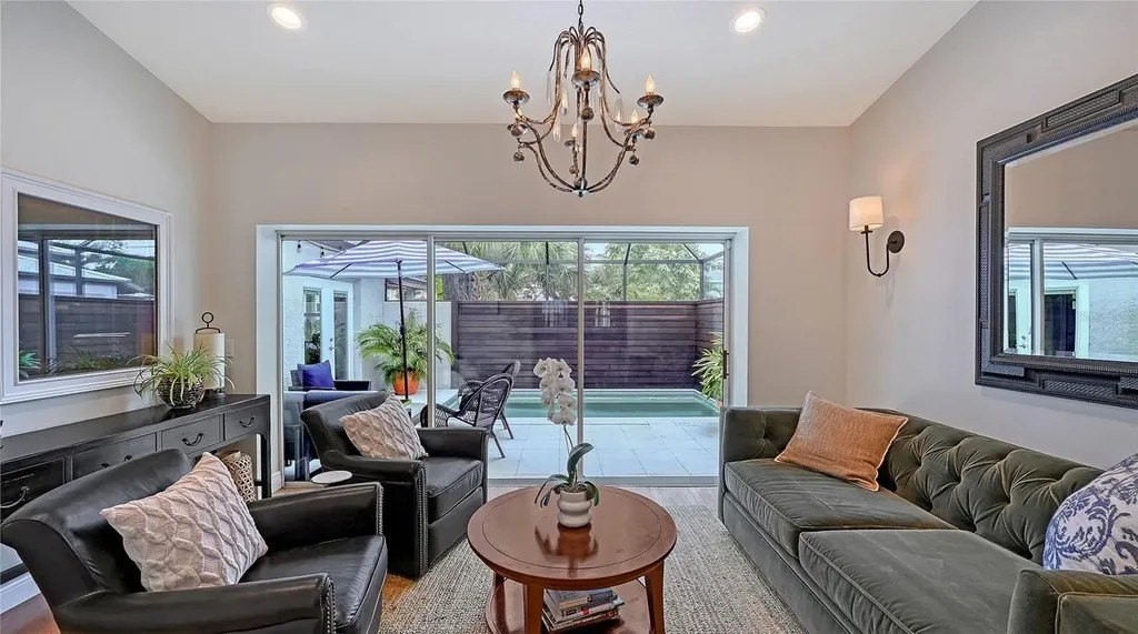 Perfectly situated in Sarasota’s vibrant Downtown just minutes from restaurants and boutiques within the coveted Gillespie Park neighborhood, this beautiufully renovated 2,938 sf, 4-bedroom, two-story Key West–inspired residence blends timeless architectural charm with modern sophistication. A magnificent oak tree graces the front yard, framing the home’s welcoming faade, while a historic brick drivewaycrafted from original Sarasota street brickssets the stage for the artistry and attention to detail found throughout. Remodeled and expanded in 2017, the interior showcases solid wood floors, designer lighting, and refined finishes which create a warm yet elegant ambiance. The gourmet kitchen impresses with custom cabinetry with soft-close drawers, quartz countertops, and top-tier appliances including a professional Forno gas range. Open-concept living and dining spaces are enhanced by an electric fireplace and abundant natural light streaming through windows and doors, many of which are impact-rated. Upstairs, rich hardwood flooring continues through the private quarters, including the serene primary suite featuring a custom-built walk-in closet and a spa-inspired bath adorned with porcelain tile, designer fixtures, and a soothing neutral palette. The flexible floor plan offers versatility for today’s lifestyles: a downstairs bonus areacurrently used as a Pilates studio with private entryis zoned for business or rental use and could easily serve as a large luxurious primary suite, family room, media room, or fitness space. A beautifully designed 600 sf apartment provides fully independent or multi-generational living with its own contemporary kitchen, induction cooktop, full-size washer and dryer, and private balcony. Perfect for hosting guests, mother-in-law suite, extended family, or generating income, this versatile space has a separate entrance, parking spot and its own address, and qualifies for one-week minimum rentals. Additional highlights include a temperature-controlled wine room, an oversized laundry area, three zoned AC, and a security system. Outside, a lush courtyard with screened lanai and heated pool creates a tranquil retreat for relaxing or entertaining amid tropical landscaping. Set on a spacious, fenced corner lot, the property offers abundant privacy along with an expanded 2½-car garage featuring an impact-rated door and generous storage. Residents of Gillespie Park enjoy one of downtown Sarasota’s most walkable locationsjust moments from Main Street and the new Bayfront Park where you can catch sunset, take in water views while enjoying a concert, yoga or lounging with your feet in the sand. Enjoy nearby fine dining, boutique shopping, arts and cultural venues, and easy access to SRQ International airport. The neighborhood’s namesake park offers tennis and pickleball courts, dog areas, and a lively community spirit that captures the essence of urban Sarasota living. Blending the character of Sarasota’s historic past with the ease of modern luxury, this exceptional residence delivers rare flexibility, craftsmanship, and an enviable location in the heart of it all.